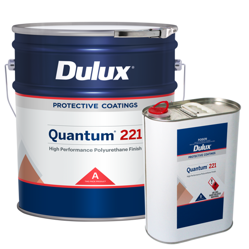 QUANTUM® 221 is a premium quality, high gloss two pack acrylic polyurethane. QUANTUM® 221 has been designed for excellent weathering and gloss retention even in areas of extreme UV radiation. QUANTUM® 221 is readily recoatable with minimal surface preparation.